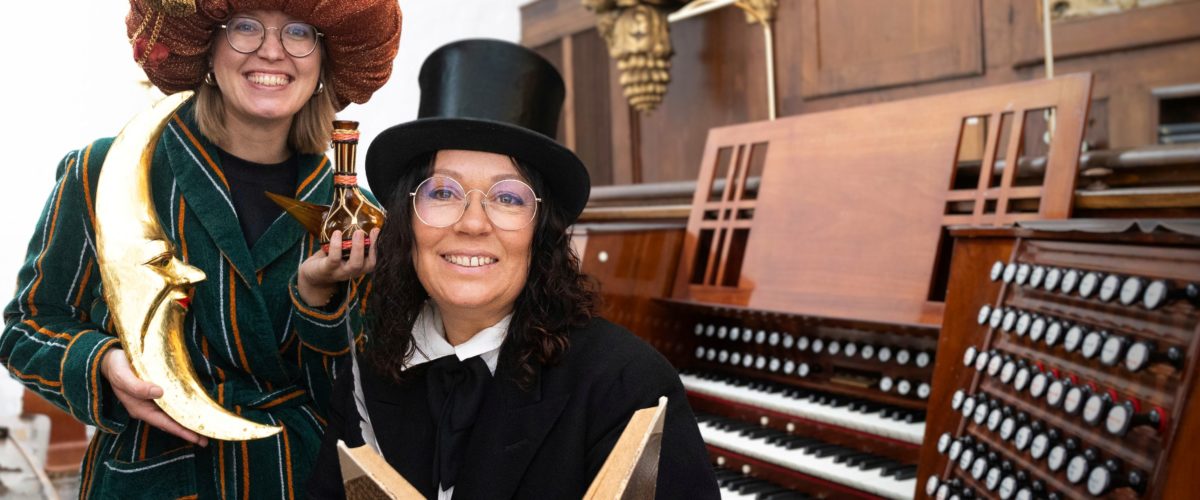 Anne Agerskov og Pia Jeanette Nielsen vil føre publikum gennem en eventyrlig rejse med orgelspil og fortællinger, og Sønderjysk Pigekor og drengekors juniorkor vil ledsage med stemningsfulde salmer og sange. Eventyrene bringes til live, mens de mange toner fra det imponerende orgel beriger historien med lyd og atmosfære.