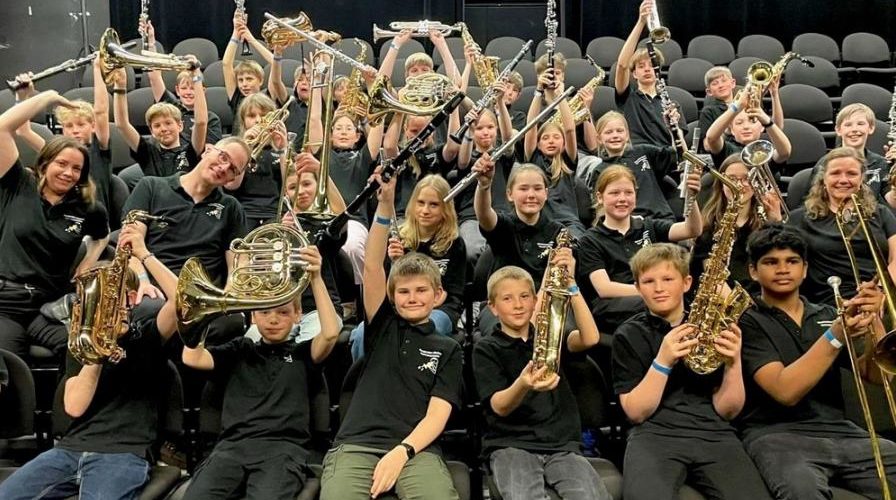 Der bliver blæs på både store og små instrumenter i en koncert, hvor eleverne giver den alt, hvad de har!